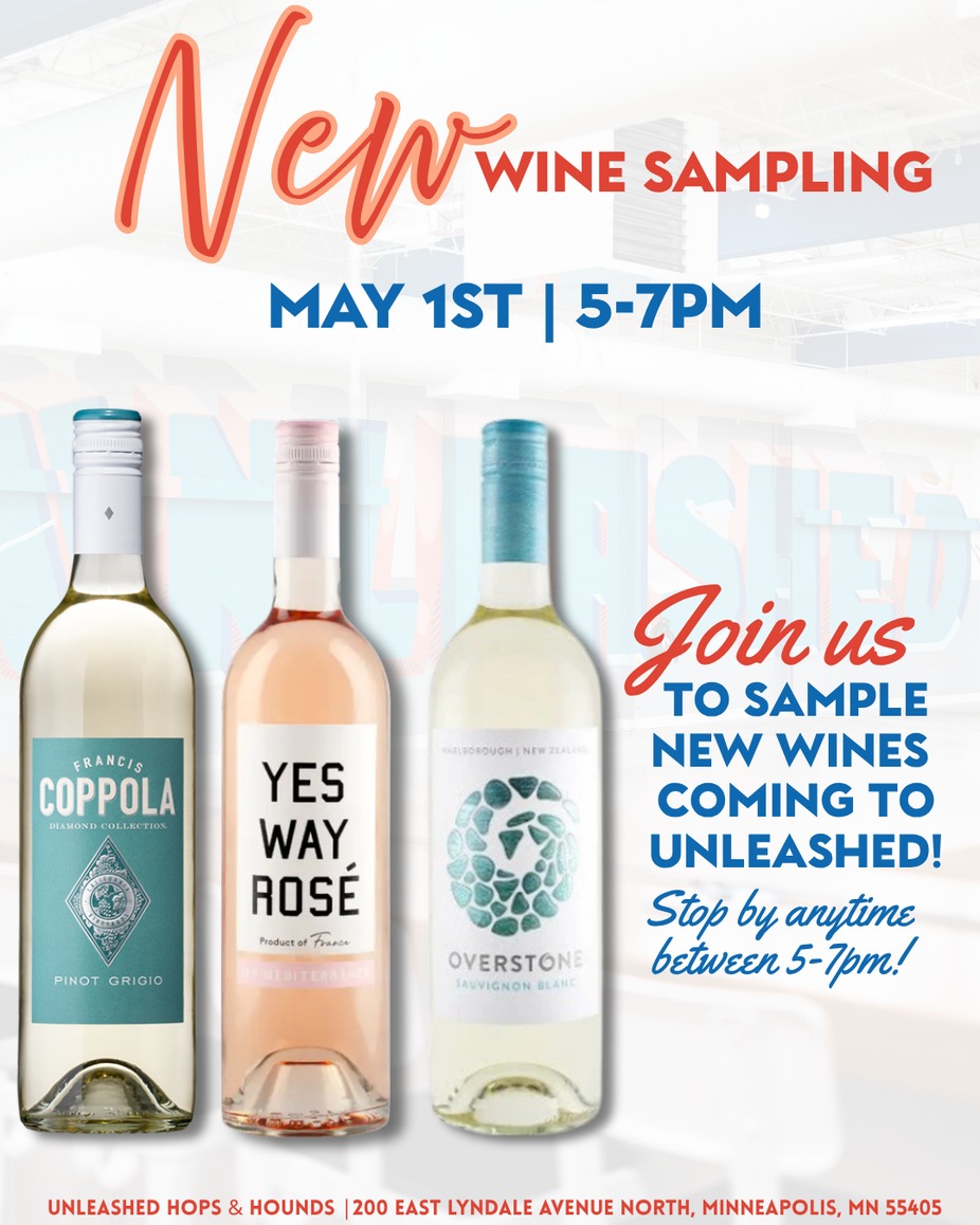 Join us at Unleashed for an evening of wine tasting! Stop by on May 1st from 5–7PM to sample a curated selection of new wines we’re excited to share. Whether you're a casual sipper or a wine lover, there’s something for everyone. Cheers! 🥂