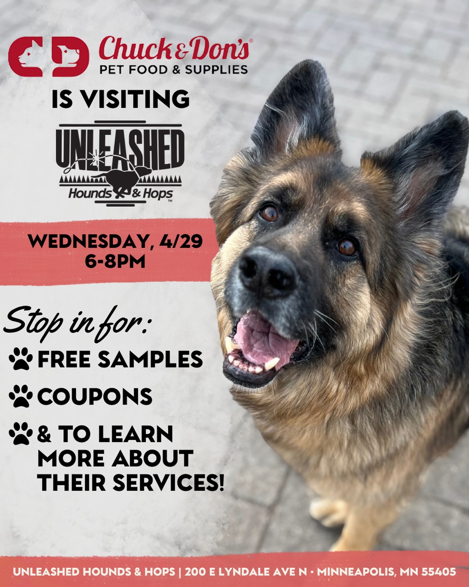We’re excited to welcome Chuck & Don’s to Unleashed! Stop in April 29 from 6–8PM to grab free samples, snag some coupons, and learn more about their pet-focused products and services. It’s the perfect excuse for a midweek outing with your pup!